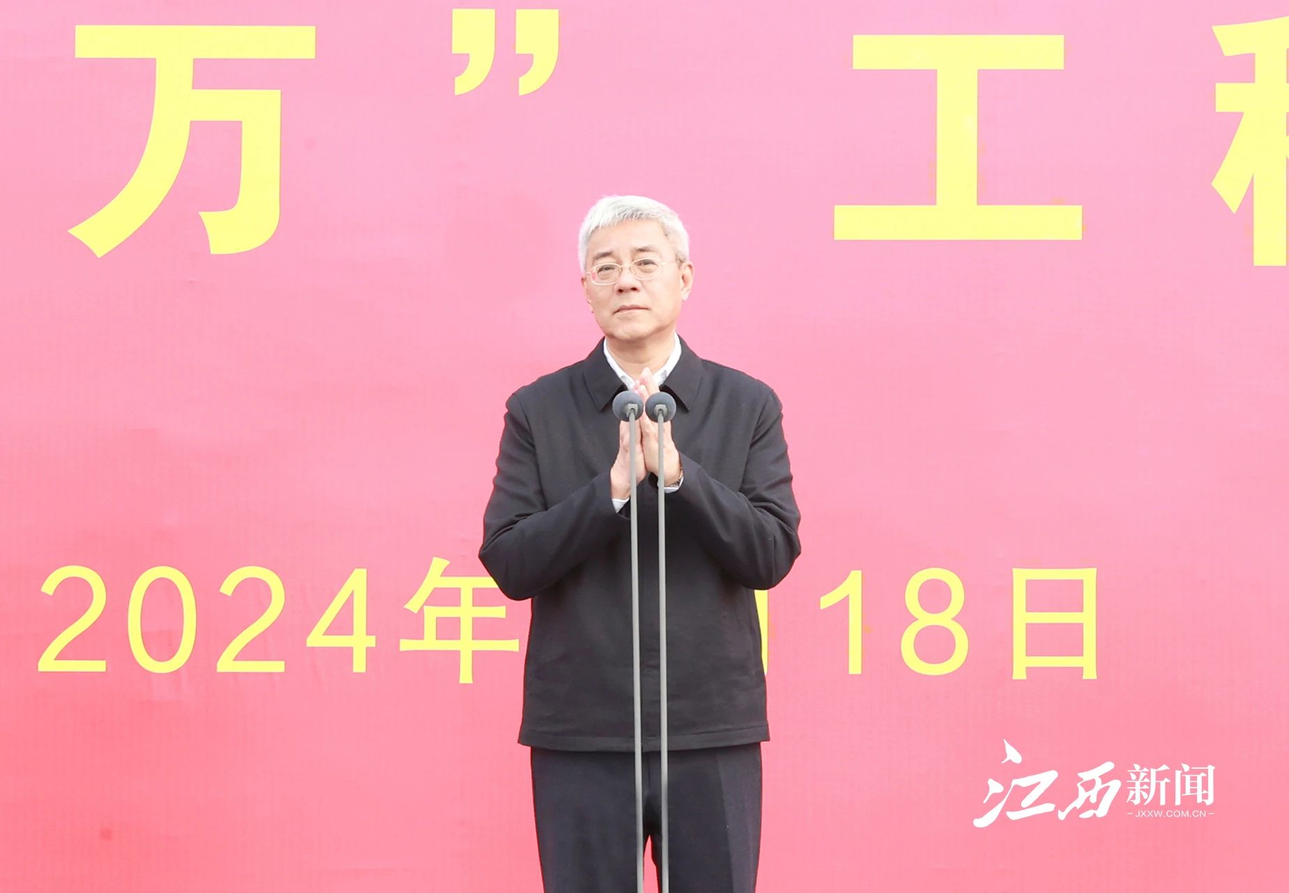 号令催征、只争朝夕。动员大会上,尹弘下达开工令:“我宣布,江西省2024年一季度重大项目开工!”现场工程机械轰鸣,项目火热开工建设。