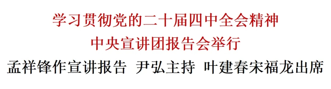根据党中央统一部署,11月2日,学习贯彻党的二十届四中全会精神中央宣讲团报告会举行。中央宣讲团成员、中央办公厅分管日常工作的副主任孟祥锋作宣讲报告。